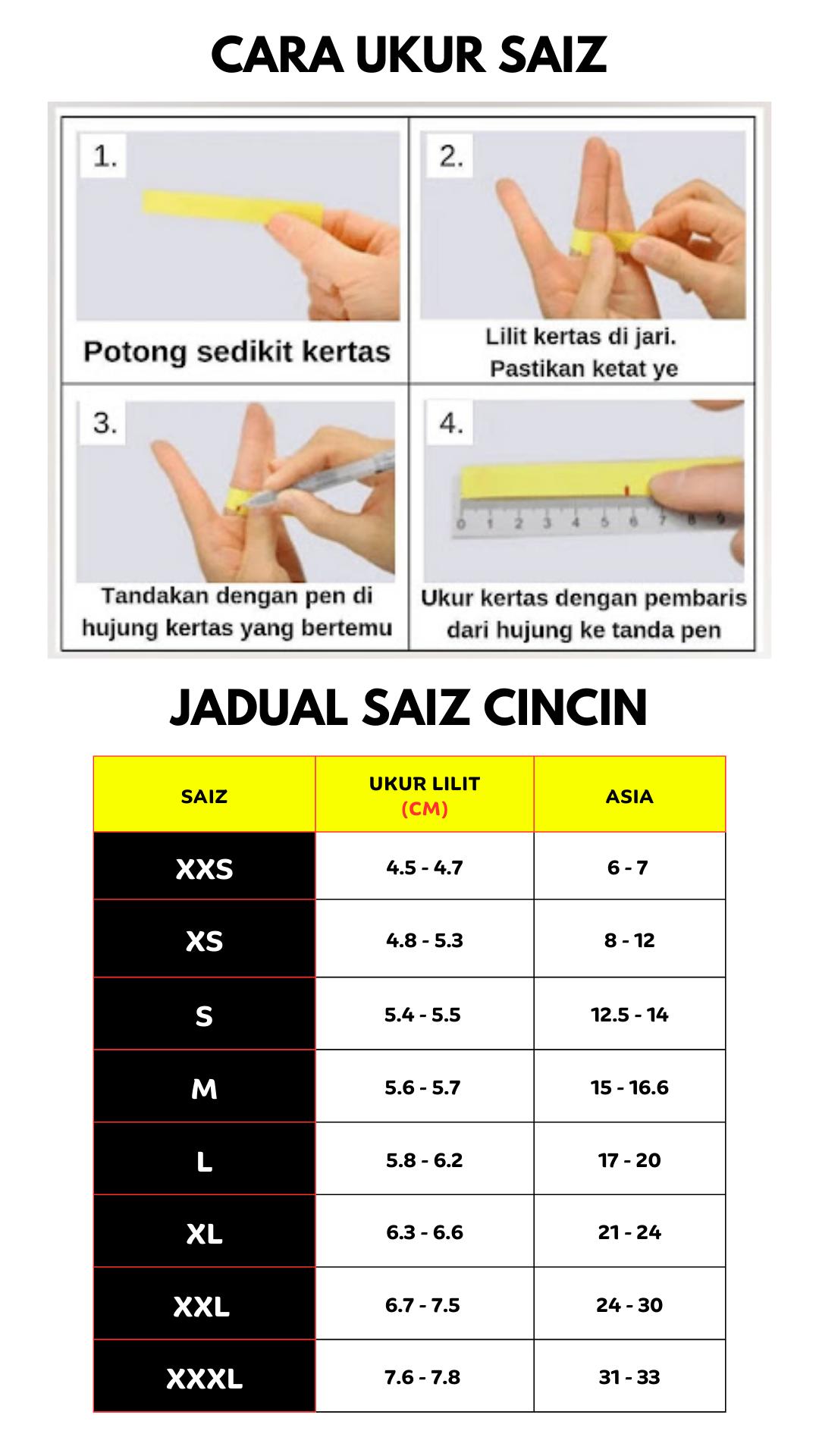 - Saiz Gelang (Adjustable): Ukurlilit tangan 15 - 28cm
